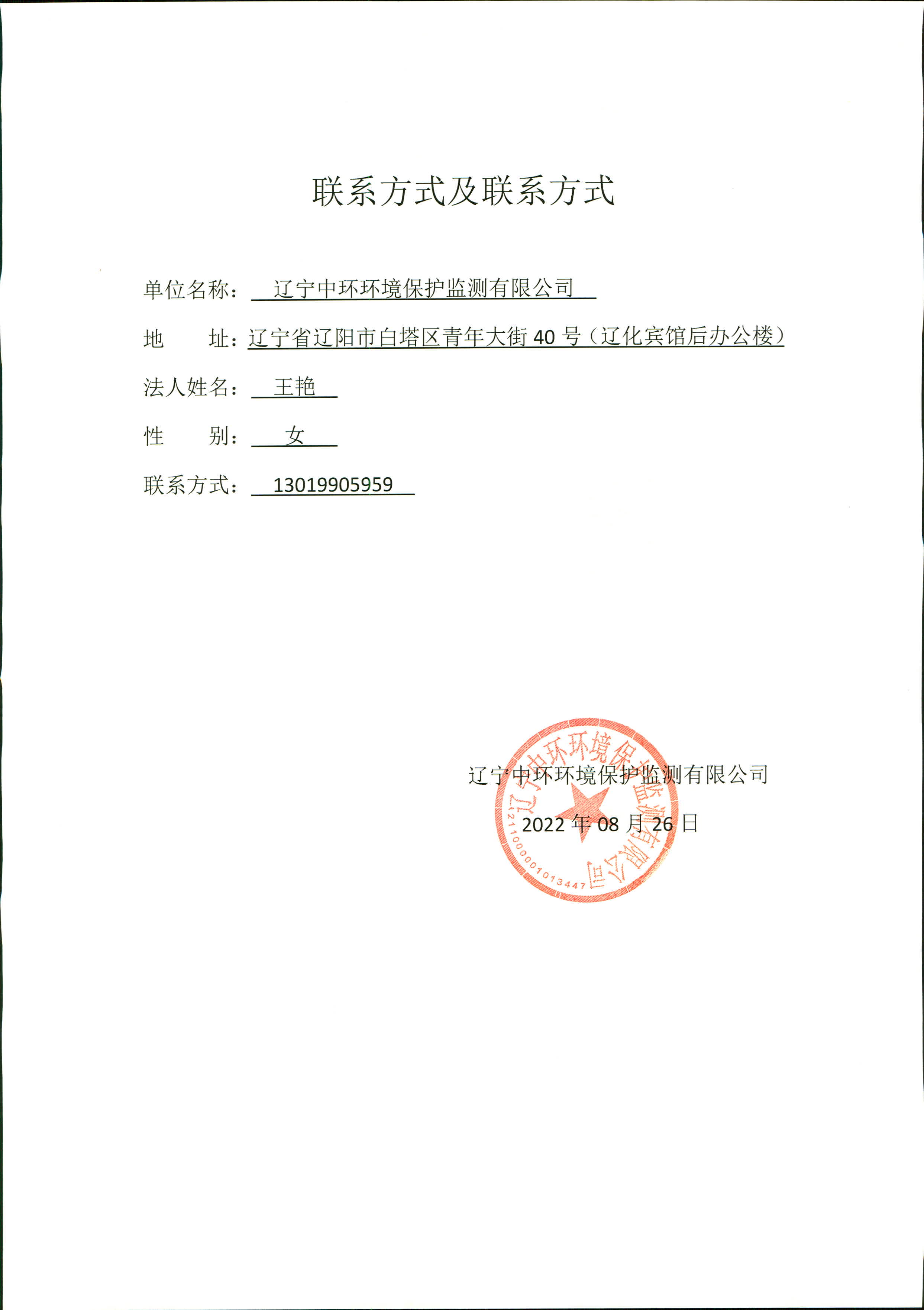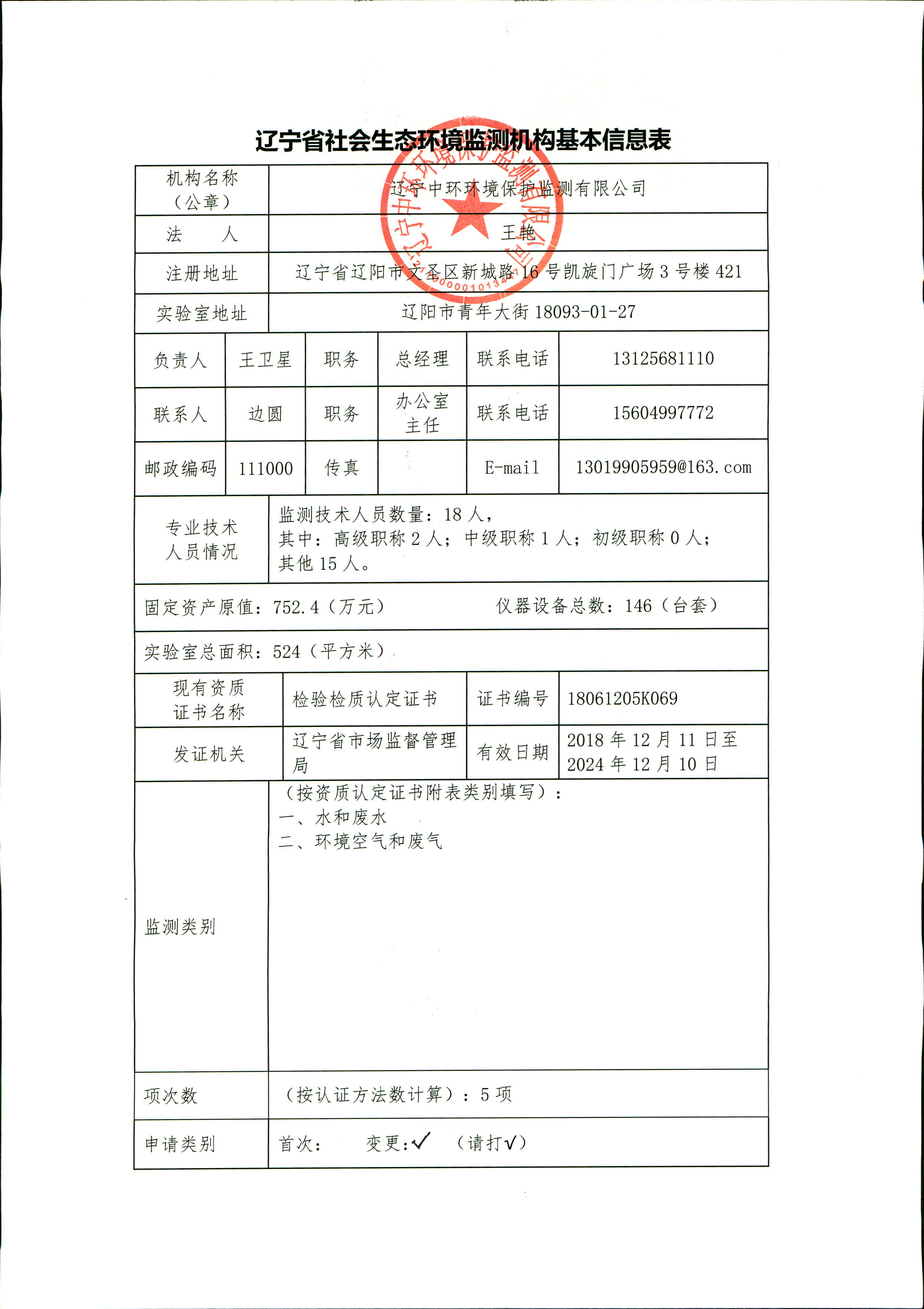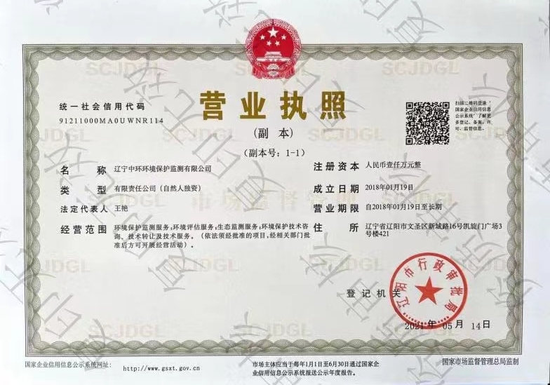 遼寧中環(huán)環(huán)境保護(hù)監(jiān)測有限公司基本信息公開